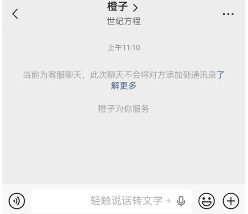 3、跳转的过程需要等待一会,出现微信聊天界面就可以跟客服交流了,并且不会把客服添加到通讯录。