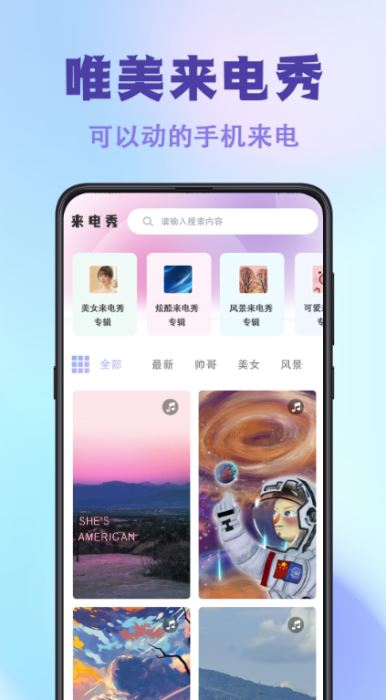 来电秀:个性化主题,可任意从中选择,风景,情侣你的桌面你做主,让你的视频或照片完美在你的手机中呈现