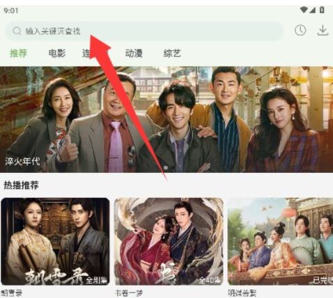 1、在首页浏览推荐的热门影视剧集内容,或通过搜索功能查找目标影视作品资源。