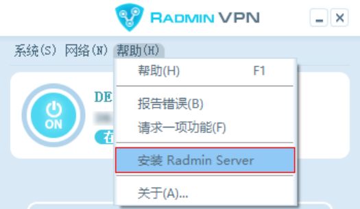 1、点击帮助下拉菜单的“安装Radmin Server”进行安装,