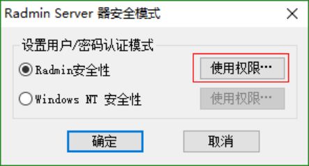 3、再选择Radmin 安全性,并点击使用权限,