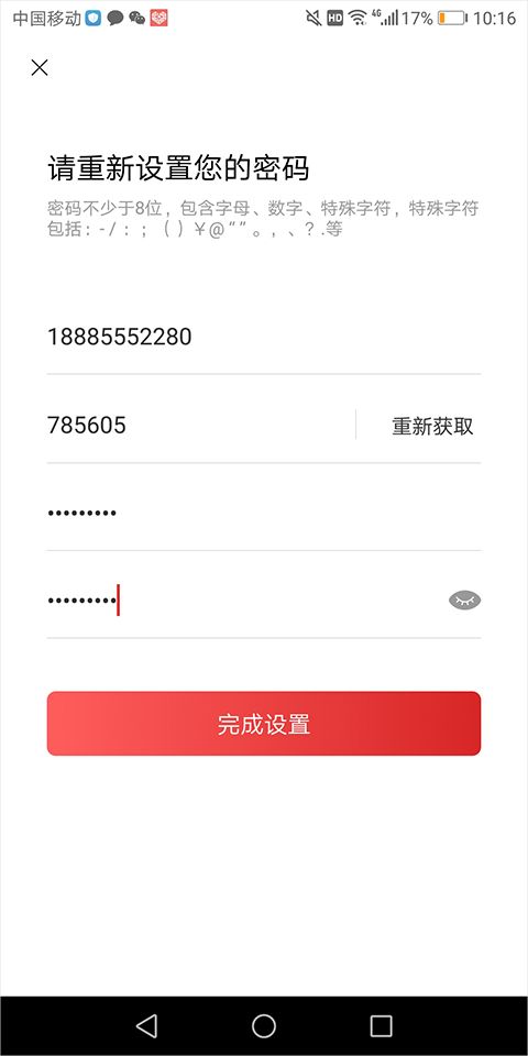 3、重新设置密码后点击【完成设置】即可用新密码登录了