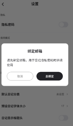 打开隐私密码前,需要先先绑定常用邮箱,在忘记密码时,可通过邮箱找回
