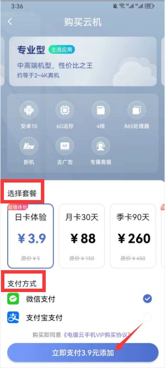 3、选择套餐并支付