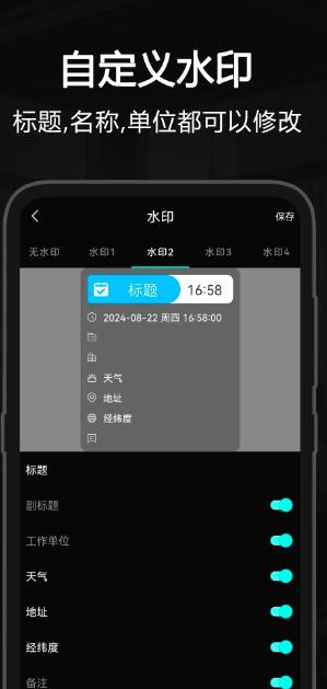 自定义打卡水印相机--支持时间地点天气经纬度的水印拍照相机APP,自定义水印相机拍照即自动加水印。