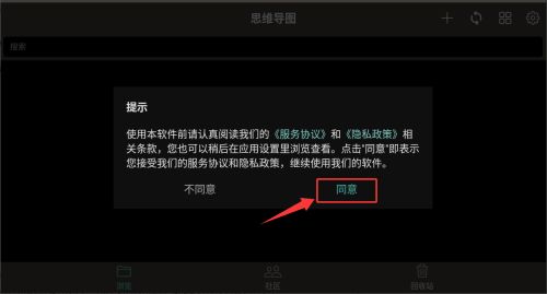 1、在服务协议与隐私政策提示中点击"同意",即可进入应用。