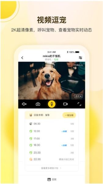 【智能喂食】远程一键为宠物投喂干粮,制定喂食计划,健康合理喂食。