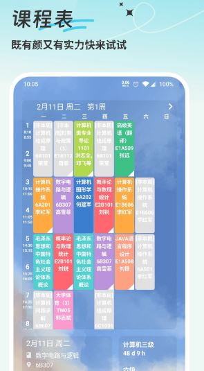 软件提供完整的课程表管理功能,支持用户录入每周课程安排,随时查看当日课程信息。通过清晰的课程展示界面,学生可以更好地规划学习时间,做好课前准备。