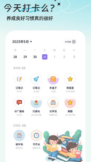 3、在日常使用中,学生可以随时查看当天的学习安排,通过打卡功能记录任务完成情况。