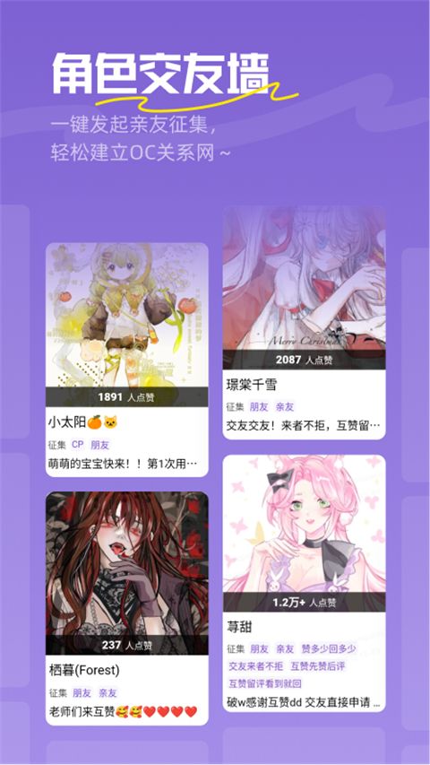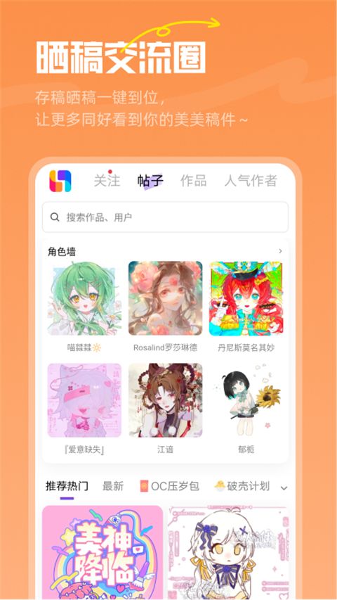 app内拥有丰富的OC素材,如人物设计、背景、道具等,为创作者提供灵感和创作工具,帮助他们实现独特的艺术愿景。