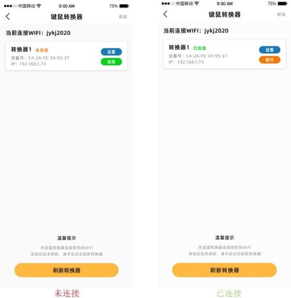 点击连接按钮,转换器将连接到您的手机,此时已经可以在云电脑/云游戏中使用键鼠啦~