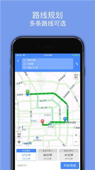 4、实时路况:国内主要城市的实时路况数据,清晰准确的展示在地图上。
