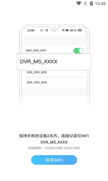 保持手机在设备2米内,连接记录仪WiFiDVR_M5_XXXX