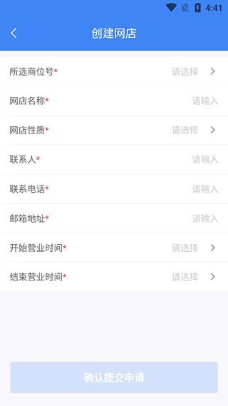 2、进去之后,按照要求输入所选商位号、网店名称、网店性质等。