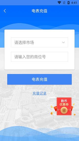 软件除了基本的电商功能外,大家还可以选择自己的所在市场以及商位号,进行电费充值。
