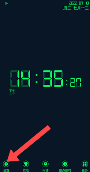 2、时钟主界面中绿色数字显示当前时间,点击底部设置按钮,能进入设置页面调整各项时钟参数。