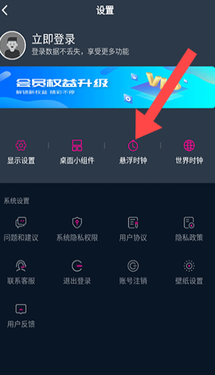 3、时钟应用的设置页面里,有悬浮时钟选项,点击可进行相关设置,实现时钟悬浮显示,方便随时查看时间。