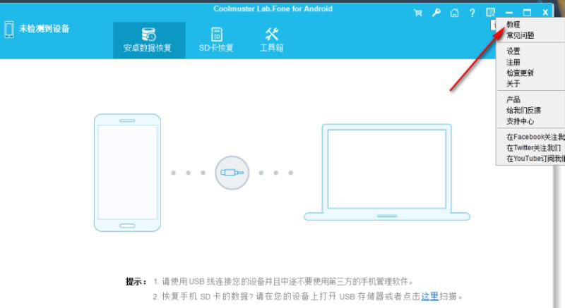 启动Coolmuster Lab.Fone for Android就可以直接点击第一个数据恢复功能