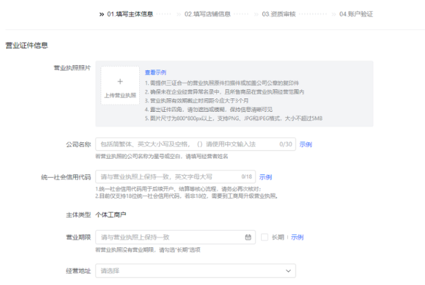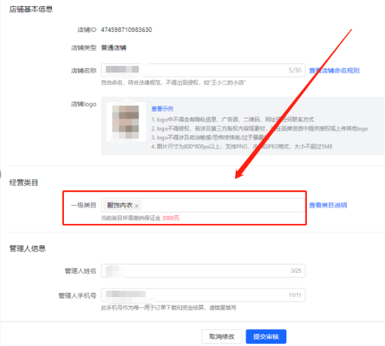 注意:选择经营类目要在执照经营范围里,否则审核不会通过。