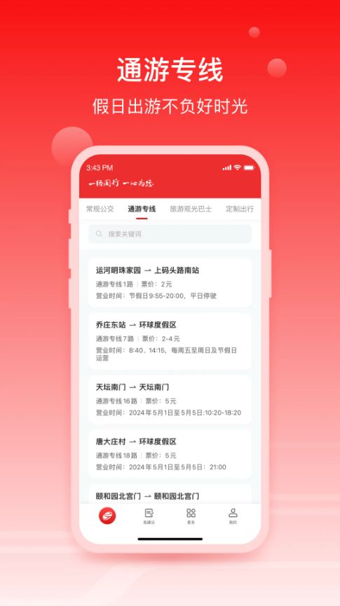 一路同行app是由北京公交集团官方推出的一款专为北京地区用户提供公交出行服务的软件,致力于为乘客提供了更加精准全面的公交出行信息服务内容和更加多样的公交出行服务品种,提升了地面公共交通智慧化服务水平。软件内包含北京市所有的公交路线,用户可以在这里轻松的进行路线查询,能够随时了解各种便捷的出行方式,规划最优质的换乘路线,为市民出行提供便利。