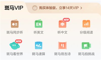 3、开通软件的VIP可以享受斑马同步听、听音乐、分级阅读等权益。