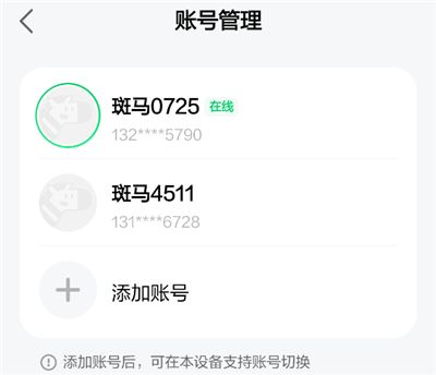 8、这样就成功添加了一个账号,添加成功后,本设备支持账号切换。