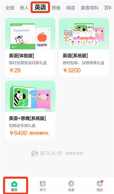 1、点击【首页】上方的【英语】,可以看到会有一些英语的学习资料,大家可以根据自己的情况进行购买。