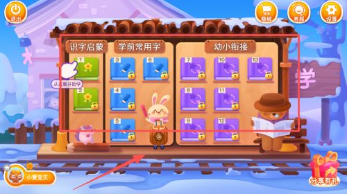 1,打开软件,选择学习阶段,进入主界面后点击识字课程,根据孩子年龄选择对应单元,每个单元包含多个生动有趣的识字动画。