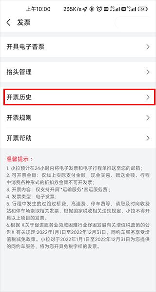 5、在新打开的页面中即可查看到开票历史记录,然后想开票报销的可对其进行操作