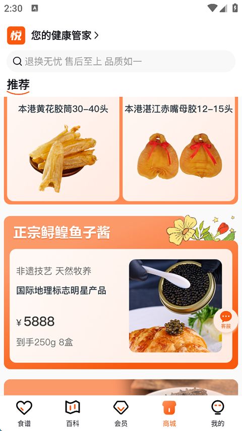 悦滋补app是一款在线售卖滋补以及营养品的电商平台,为广大关注营养、崇尚健康的用户提供养生参考和健康好物推荐。软件拥有专业团队在线严格选品,鱼子酱、海参、鱼胶等养生滋补好物都可溯源正品,在保证优惠价格的同时,坚持品质优先,保证用户到手均为旗舰店正品。悦滋补app还开设食谱板块,根据不同节气提供不同食谱、调养建议。用户在购买滋补品后,可在软件内查询相关食谱,根据自己喜好选择其他配菜搭配,按照食谱步骤进行制作。严选好物健康随行,食补养生精心搭配就在悦滋补。