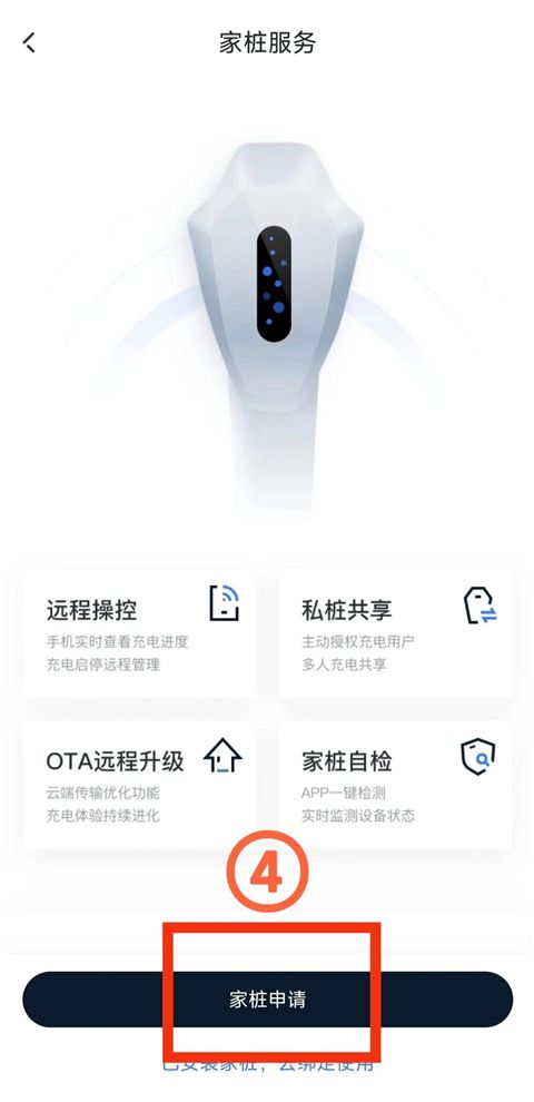 4、若无家桩,先点击【家桩申请】进行充电桩申请。