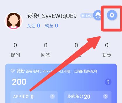 1、进入【我的】界面,点击右上角的设置图标。