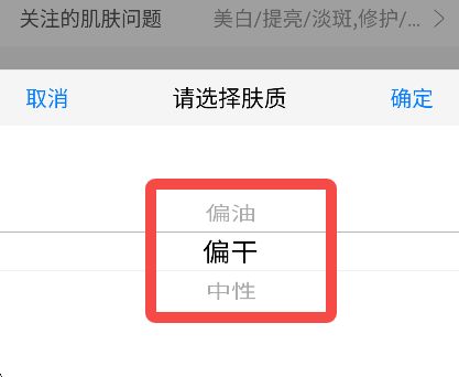 4、在这里我们可以切换肤质为偏油、偏干。
