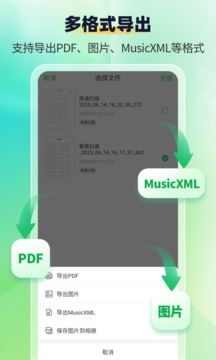 遇到优美的节奏音符想分享,别担心,AI智能扫描乐谱可直接导出图片或PDF格式,音乐交友更简单!