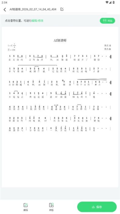 乐谱识别智谱师(优谱君,智谱师)是一款AI智能识谱软件,只需使用手机拍照或导入图片,即可提取出简谱内容,无论是手写谱还是印刷谱,均可识别为工整的、可供编辑的电子档简谱。可用于“手写谱转正规谱、低清晰度简谱翻新、歌曲改编”等场景,为您解决人工打谱烦恼,提高制谱效率,更方便、更快捷!