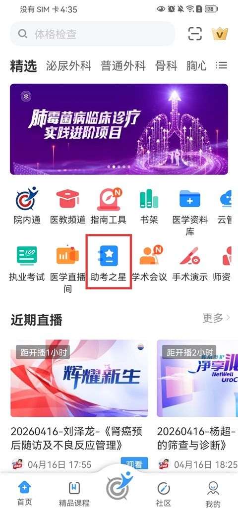 1、打开CCMTV临床频道app,点击【助考之星】选项进入。