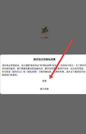 1、启动应用,弹出服务协议和隐私政策提示弹窗,认真阅读协议中的内容,点击同意,进入应用主界面。