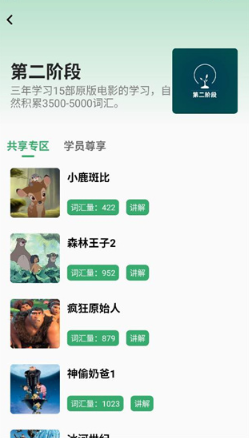 3、浏览app内丰富的英语学习资源,从经典电影台词到现代文章片段,满足您多样化的学习需求。