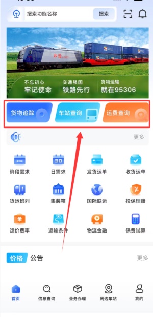 3、首页提供了实时货物运输状态追踪全国各车站信息查询及预估运费计算等基础物流查询服务。