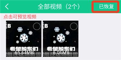 3、恢复过的视频可以点击右上角的【已恢复】查看。
