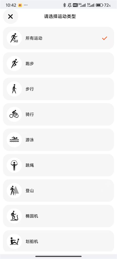 7、选择运动类型,后面就可以再该软件上同步信息了。