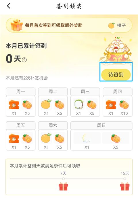 3、签到界面就在这里,点击【待签到】即可完成签到。