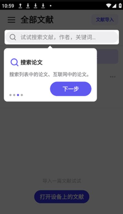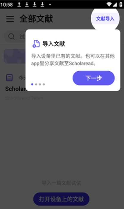 1、导入设备里的已有的文献,也可以在其它app里分享文献到这里