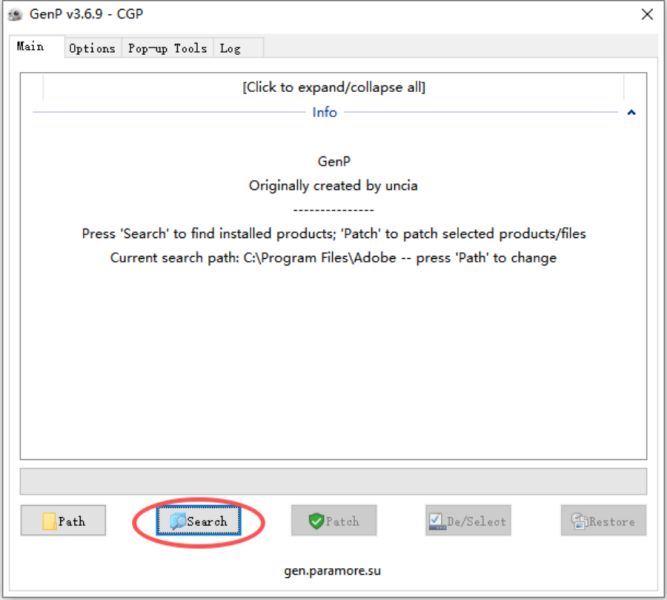 8、如果一开始安装路径是默认的,点击Search就可以下一步;如果你不是默认安装路径,点击Path,选择软件安装路径,在下一步,同理;
