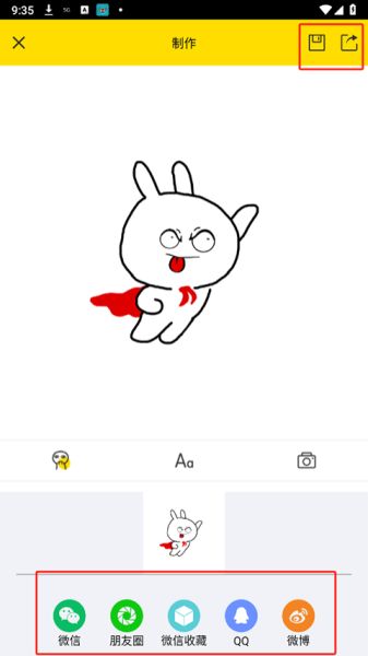 4、制作好的表情包可以点击右上角保存到相册和分享到其他平台