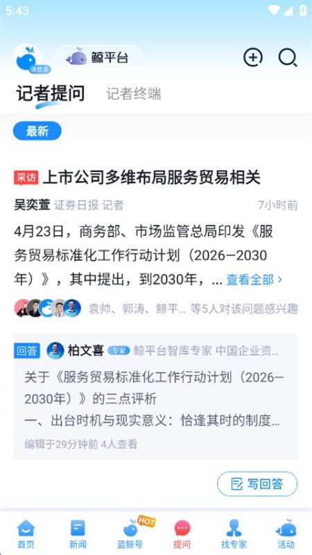 3、蓝鲸财经记者信息平台是一个仅针对中国大陆财经记者和编辑开放的财经记者信息平台;