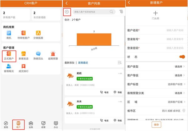 登陆电脑端管理后台,点击客户-客户列表-新增客户-添加客户信总保存