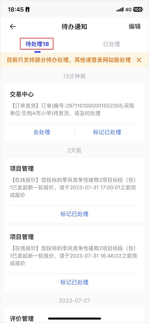 说明:如需操作发货、起草合同、结算等,请前往网页端进行操作。