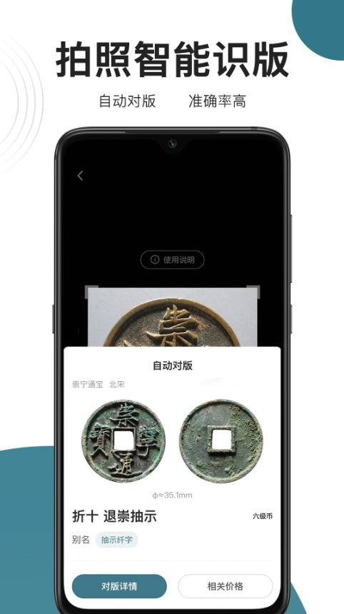 2、快速识别钱币版别,还可以将自己的钱币照片资料进行上传,生成钱币的对版内容。
