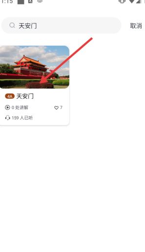 2、在搜索结果中,点击目标景点卡片,进入详情页。
